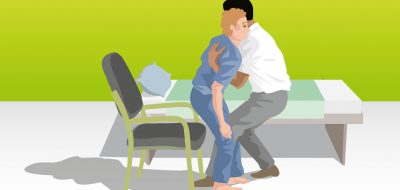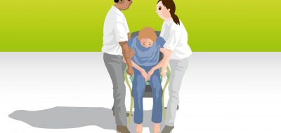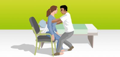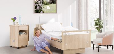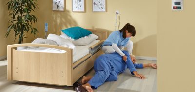 Notably for activities during basic care, nursing staff often have to lean forward, for example to be able to wash patients’ legs or feet. High weights are often moved and the body reacts to unfavorable working angles in the medium