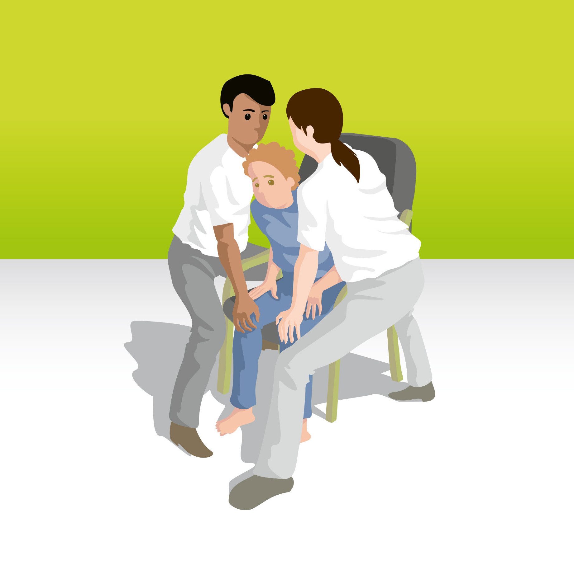 • One hand lies on the knee, the other hand under the resident’s buttocks